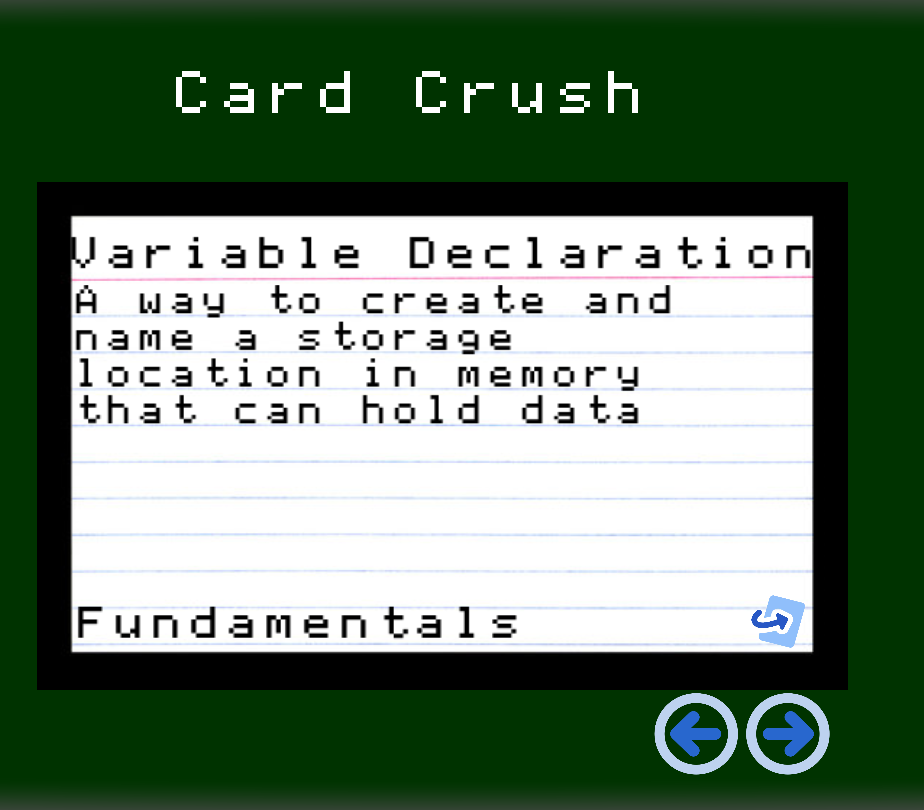 Finally, I finished a project. "Perfect is the enemy of good". Not this time! I've been scratching terms and definitions onto flash cards since I began studying for my CISSP a couple years ago and I haven't stopped. It'll be great to get all my flash cards digitized. My goal is to load up some cards and crush through them a couple times a week to keep the knowledge fresh. I feel like I learned about this type of thing from Barbara Oakley (https://www.coursera.org/learn/learning-how-to-learn). Anyway, I literally sat down and crammed this out and now I have something to iterate on.